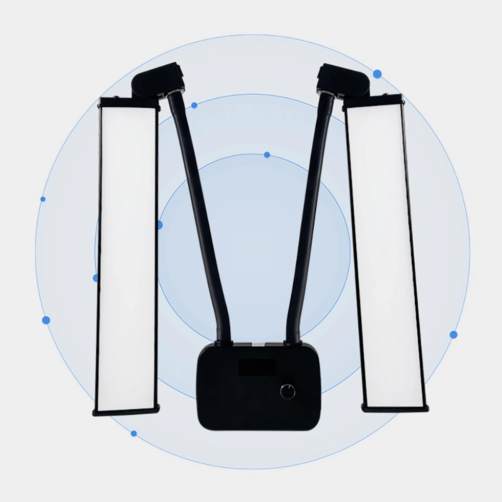 224 LED ışık boncuğuyla donatılan bu sistem, yüksek ışık verimliliği sunarken gözleri rahatsız etmeyecek yumuşaklıkta bir ışık üretir. Canlı yayınlar, ürün çekimleri ve makyaj uygulamaları gibi farklı senaryolarda doğal bir ten görünümü sunar. Işık parlaklığı ve renk sıcaklığı, üzerindeki döner tuş ya da uzaktan kumanda ile kolayca ayarlanabilir; böylece ortamınıza ve ihtiyacınıza en uygun ışığı her zaman sağlayabilirsiniz.